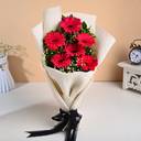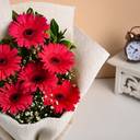 Live Flower Bouquet of 6 Pink Gerberas Flowers In Jute Packing Fresh Live Flower Bouquet of 6 Pink Gerberas Flowers In Jute Packing Gerberas Bouquets (6 Flowers)