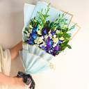 Celebrate special moments with the FlowerAura Love Fresh Live 4 White & 4 Blue Flowers Bouquet, beautifully presented in designer packaging, perfect for Valentine's Day, birthdays, anniversaries, Women's Day, and Mother's Day. This enchanting bouquet features a unique blend of 4 white flowers and 4 blue flowers, creating a striking floral display symbolizing purity, serenity, and harmony.