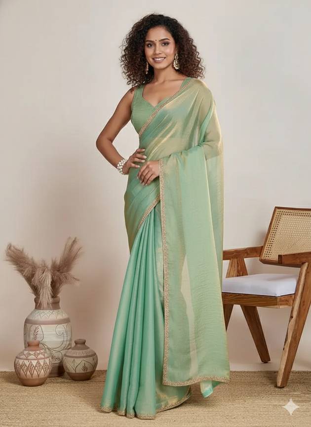 Solid/Plain Bollywood Silk Blend Saree (Green)