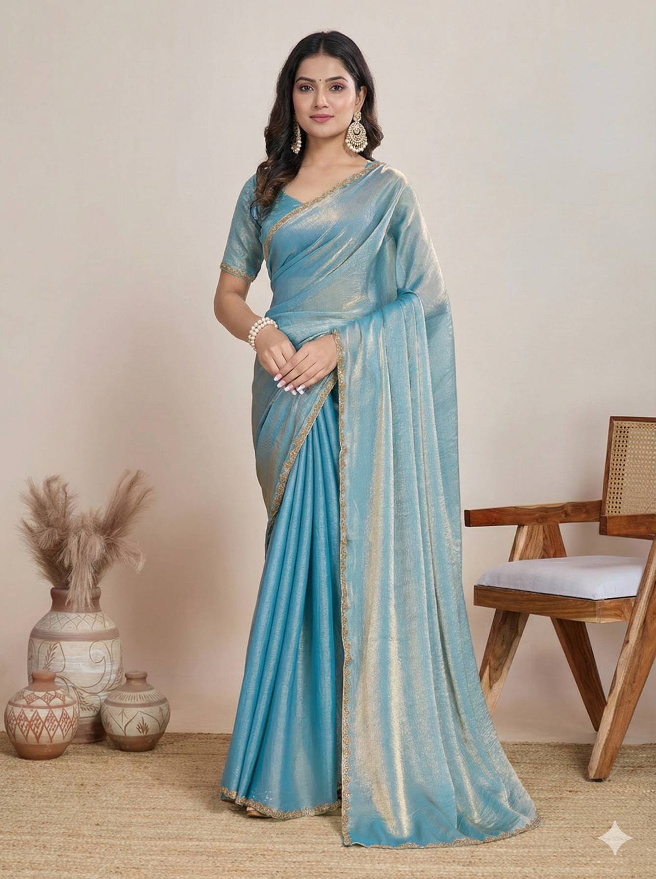 Solid/Plain Bollywood Silk Blend Saree (Blue)