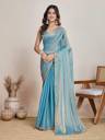 FluteFashion Solid/Plain Bollywood Silk Blend Saree (Light Blue)