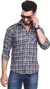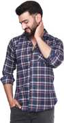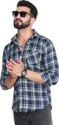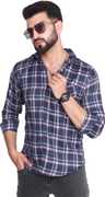 FLUUSA Men Checkered Casual Dark Blue, White Shirt