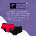 Stay comfortable and protected during your period with Fluxee's leak-proof period panties. Made from soft, breathable cotton, these panties offer advanced protection for heavy flow days. With a stylish hipster fit, they provide all-day comfort without irritation, while keeping you dry and secure.