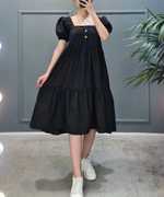 Fly Finishing Women Fit and Flare Black Below Knee Dress
