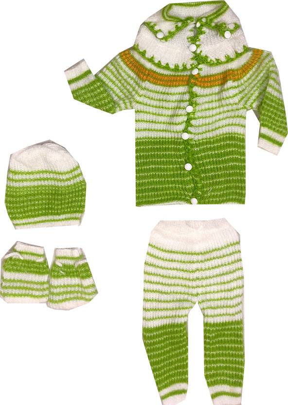 Fly Step Striped Round Neck Casual Baby Boys & Baby Girls Green Sweater