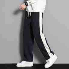 Striped pattern with side strip ornamentation in these men's track pants offers modern sty...
