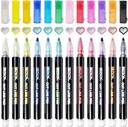 Adopted the pigment ink, these incredible self-outlined markers write in vivid metallic silver surrounded by colored borders. Unique technology produces outlines for you automatically to create a beautiful dual-color effect. Available in 12 different colors containing shiny ink, which yield a vivid color and add a sparkle luster. Also suitable for almost any surface, such as metal, pottery, wood, rubber, glass, plastic, stone, etc. Our outline pens can be used in writing a greeting card, scribbling, poster making, drawing and highlighting. Besides, they are also suitable for kids or adults DIY craft projects. Great for arts, crafts, school projects and more.