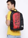 Black and red brand logo print backpackNon-Padded haul loop, ergonomic shoulder straps2 main compartments with zip closure, padded laptop compartment, noPadded backZip Pocket and 1 stash pocketPadded shoulder strap: PaddedWater-resistance: NoWarranty: 3 yearsWarranty provided by brand/manufacturer. Perfect for a commute or travel, this spacious black backpack from Flying Machine will house all your necessities. This medium-size backpack is styled with zip pocket and a zip closure.