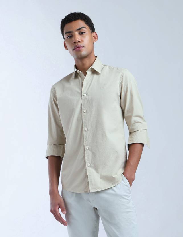 FLYING MACHINE Men Solid Casual Beige Shirt