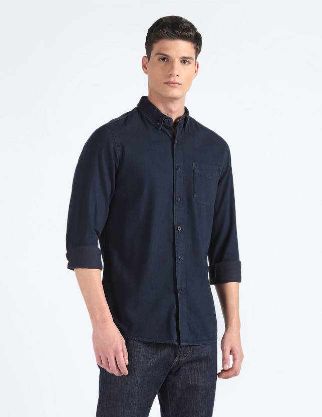 FLYING MACHINE Men Solid Casual Blue Shirt