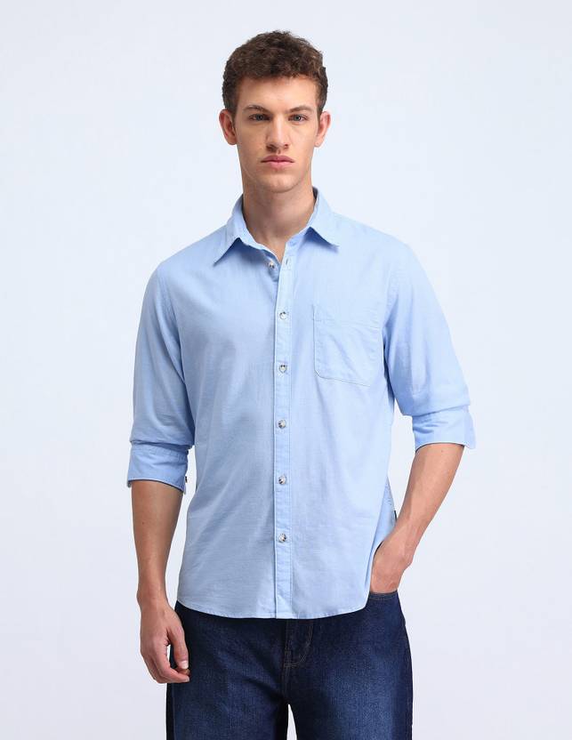 FLYING MACHINE Men Solid Casual Blue Shirt