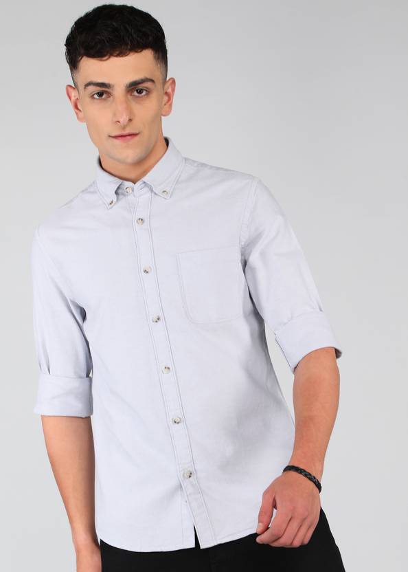 FLYING MACHINE Men Solid Casual Grey Shirt