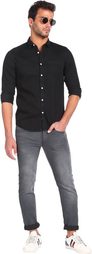 FLYING MACHINE Men Solid Casual Grey Shirt