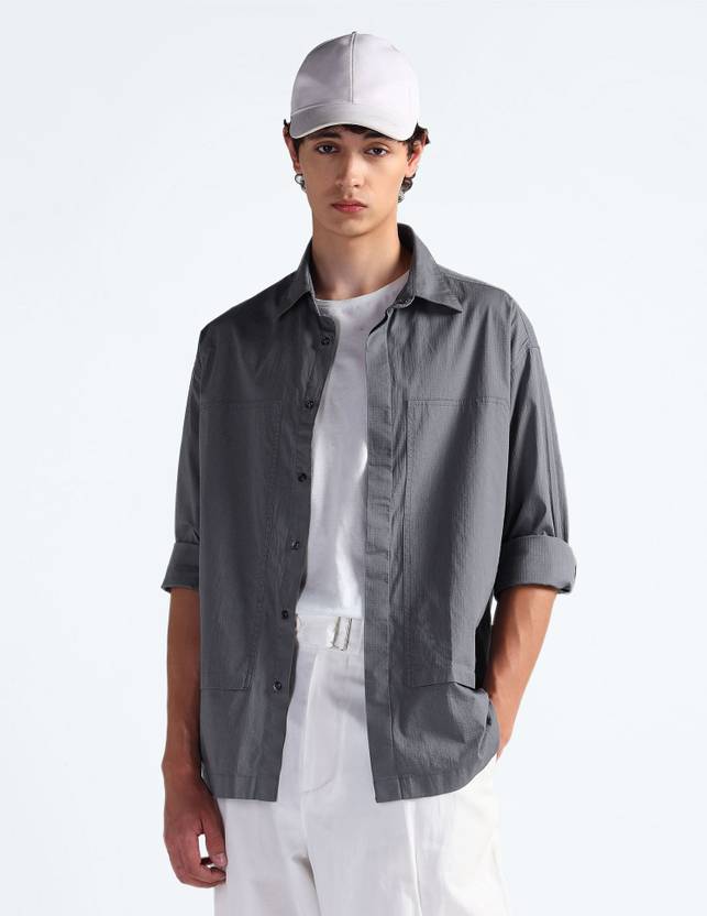FLYING MACHINE Men Solid Casual Grey Shirt