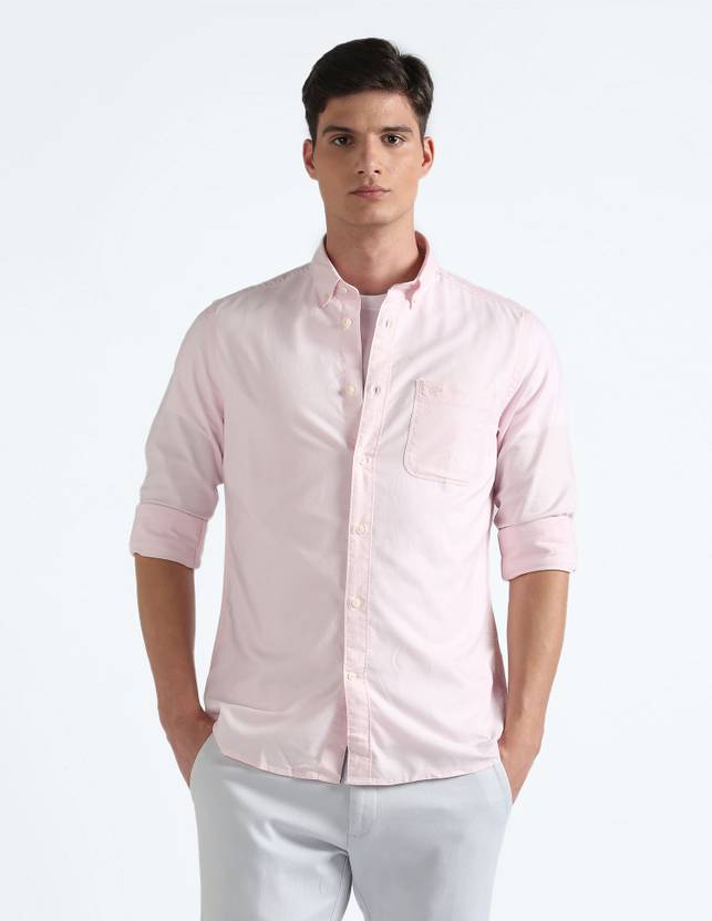 FLYING MACHINE Men Solid Casual Pink Shirt