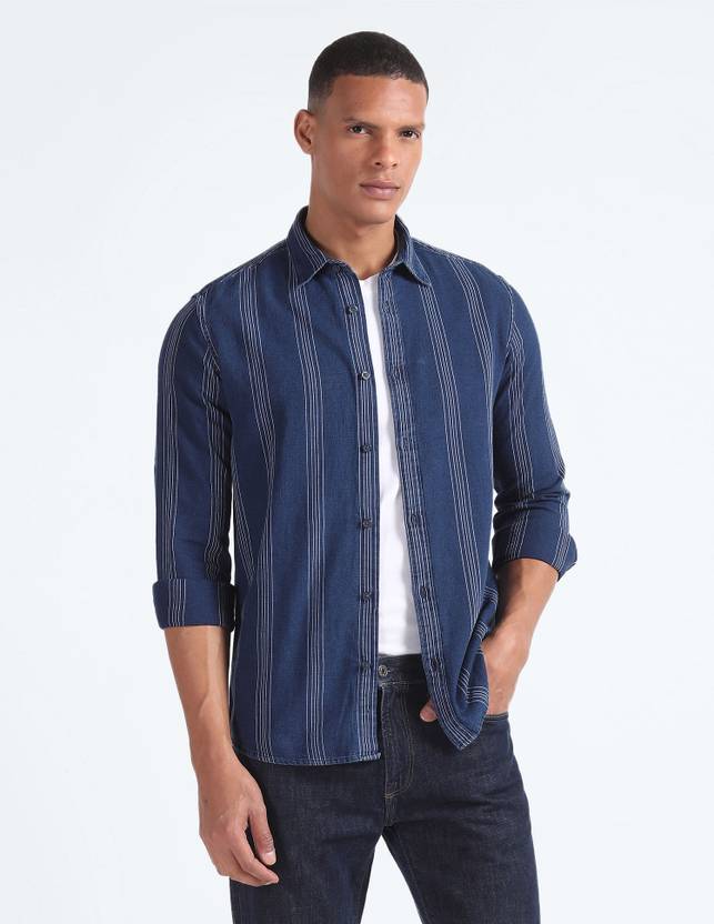 FLYING MACHINE Men Striped Casual Blue Shirt