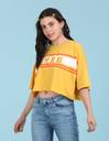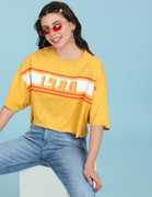 FLYING MACHINE Printed Women Round Neck Yellow T-Shirt