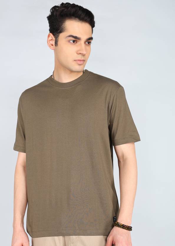 FLYING MACHINE Solid Men Crew Neck Brown T-Shirt