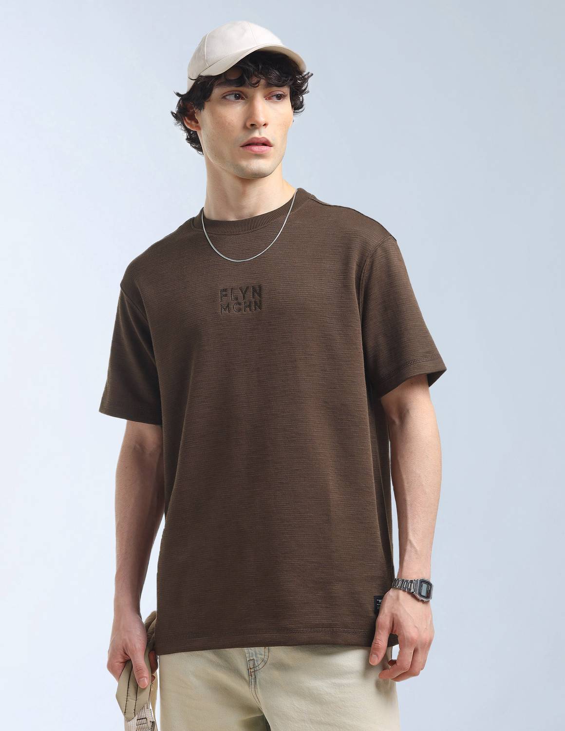 FLYING MACHINE Solid Men Crew Neck Brown T-Shirt