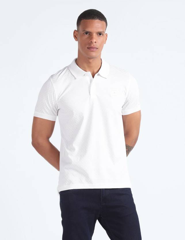 FLYING MACHINE Solid Men Polo Neck White T-Shirt