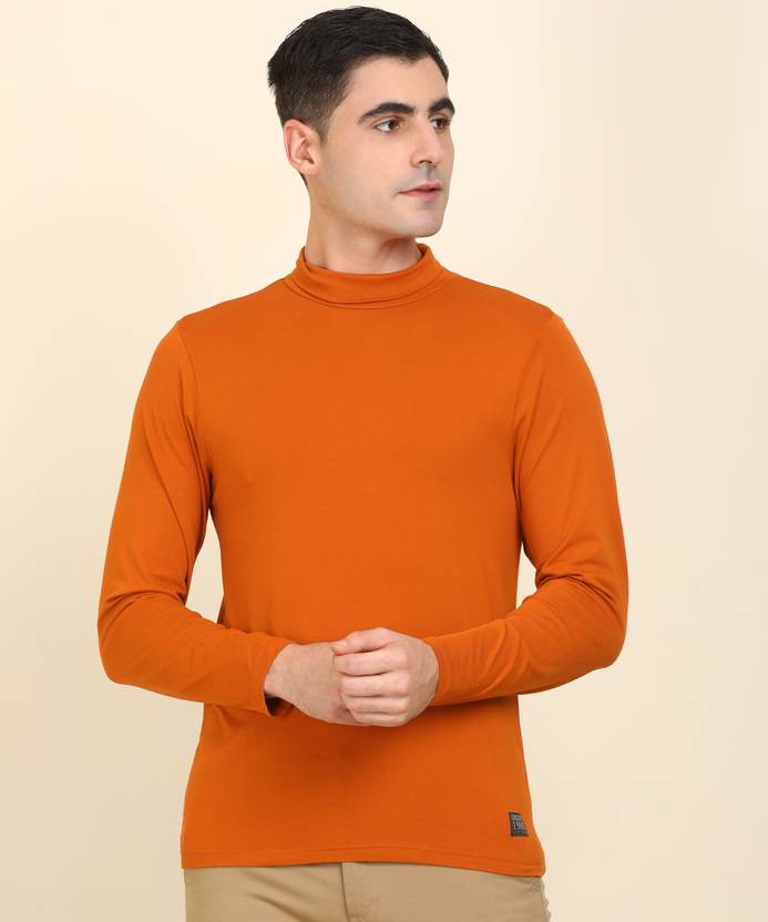 FLYING MACHINE Solid Men Turtle Neck Orange T-Shirt