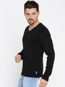 FLYING MACHINE Men Solid V Neck Pure Cotton Black T-Shirt