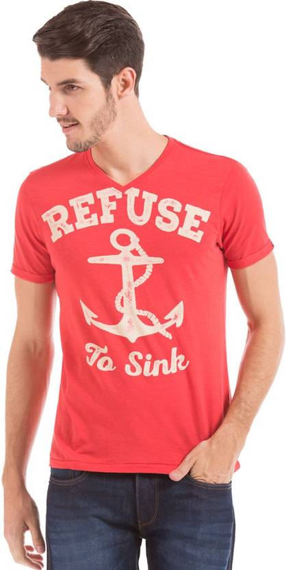 Flying MAchine presents this T-shirt which will highlight your macho personality. Made from cotton, this regular-fit T-shirt is worth buying. Featuring a V-neck and a classic design, this T-shirt can be paired with black denims and neon coloured sneakers to look smart.