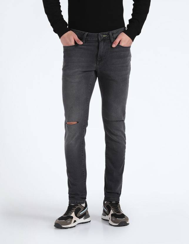 Men Super Skinny Mid Rise Dark Grey Jeans