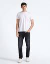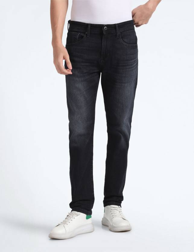 Sport these dark wash jeans featuring a mid-rise waist and slim tapered fit on your next day out and about.