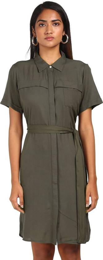 FLYING MACHINE Women A-line Green Below Knee Dress