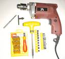10mm drill machine 24pc Socket set, mobile kit, Masonry bit Set, tester
