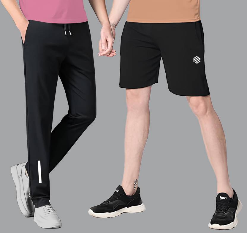 FLYZEN Solid Men Black Regular Shorts