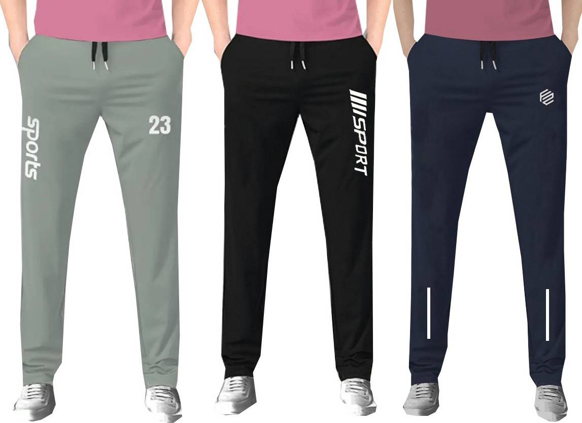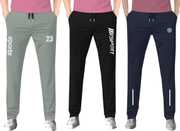 Pack of 3 Men Solid Grey, Black, Blue Track Pants