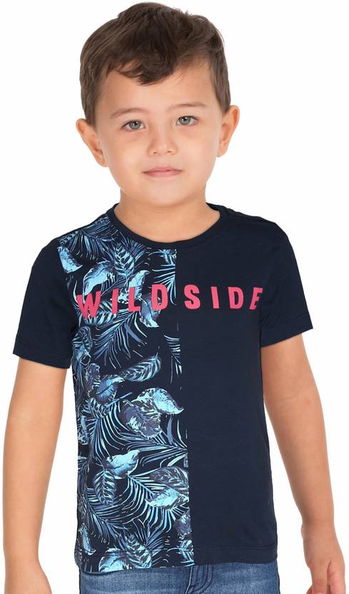 FM KIDS Boys Typography, Printed Pure Cotton Regular T Shirt (Blue, Pack of 1)