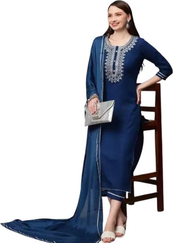 fm & sons Women Cotton Rayon Kurta Pant Dupatta Set