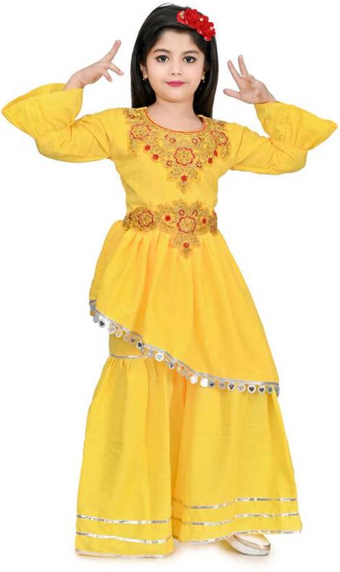 FMSE Girls Festive & Party Kurta and Palazzo Set (Yellow Pack of 1)