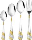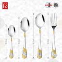 [24 KARAT GOLD PLATED FLATWARE SET]- Classic and elegant design 24 karat design on handle will match well with all of your tableware in the kitchen, smooth mirror polished surface and edge make this cutlery set keep shining after long time use. Our ergonomic cutlery set with proper thickness and rounded provides a comfortable dining experience for both adult and children.