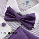FOBHIYA Microfiber Butterfly Bow Tie with Pocket Square & Cufflinks Set in Purple Solid Men Tie