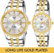 5501-BLACK Fogg Elite Couple Black Platted Premium Day & Date Functioning combo