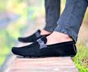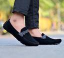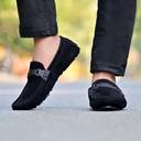 FOGGY Suede Leather Loafers For Men (Black , 8)