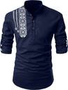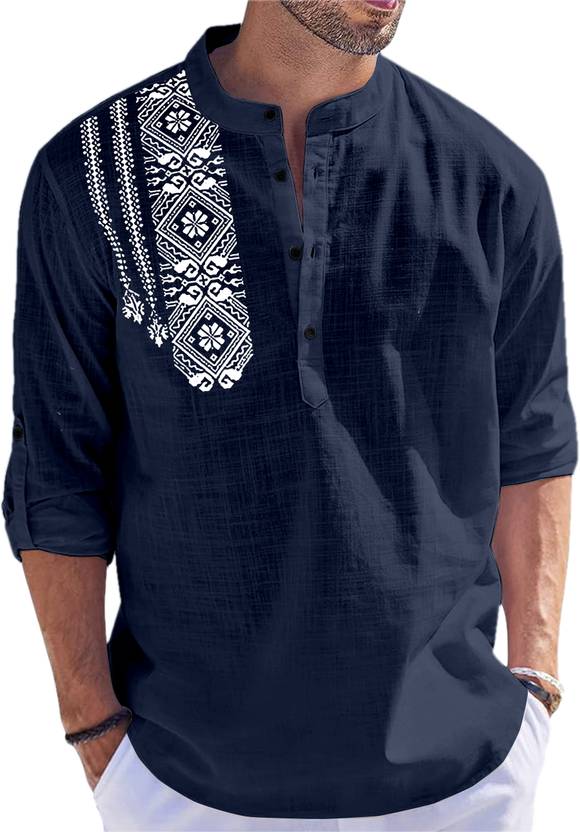 FOLGEN Men Printed Straight Kurta (Dark Blue)