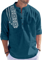 Featuring a relaxed yet polished design, this kurta pairs effortlessly with jeans or chinos for an understated casual appeal. Boasting a refined silhouette, it transitions seamlessly from daily wear to informal gatherings, festive occasions, or evening meetups. Owing to its adaptable structure, it can be styled with loafers for a laid-back look or dress shoes for a more polished finish.