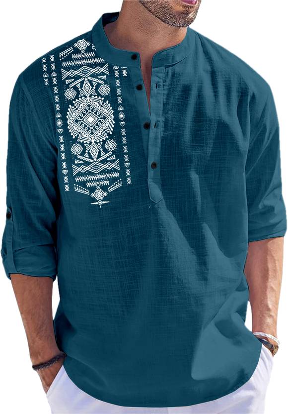 This Trendy And Attractive Men's kurtas And Look Stylish Effortlessly. Made To Accentuate Any Body Type, It Will Give You That Extra Oomph And Make You Stand Out Wherever You Are. This kurta Is Ideal For The Party,Ocassional,Festive,Evening, Valentines Day, Birthday, casual, Etc.The Kurta Is Made Of Standard Fabric Material Which Feels Very Smooth On Skin.It's a Kurta made from Pure Cotton It features Full sleeve, Mandarin/Chinese Neck.