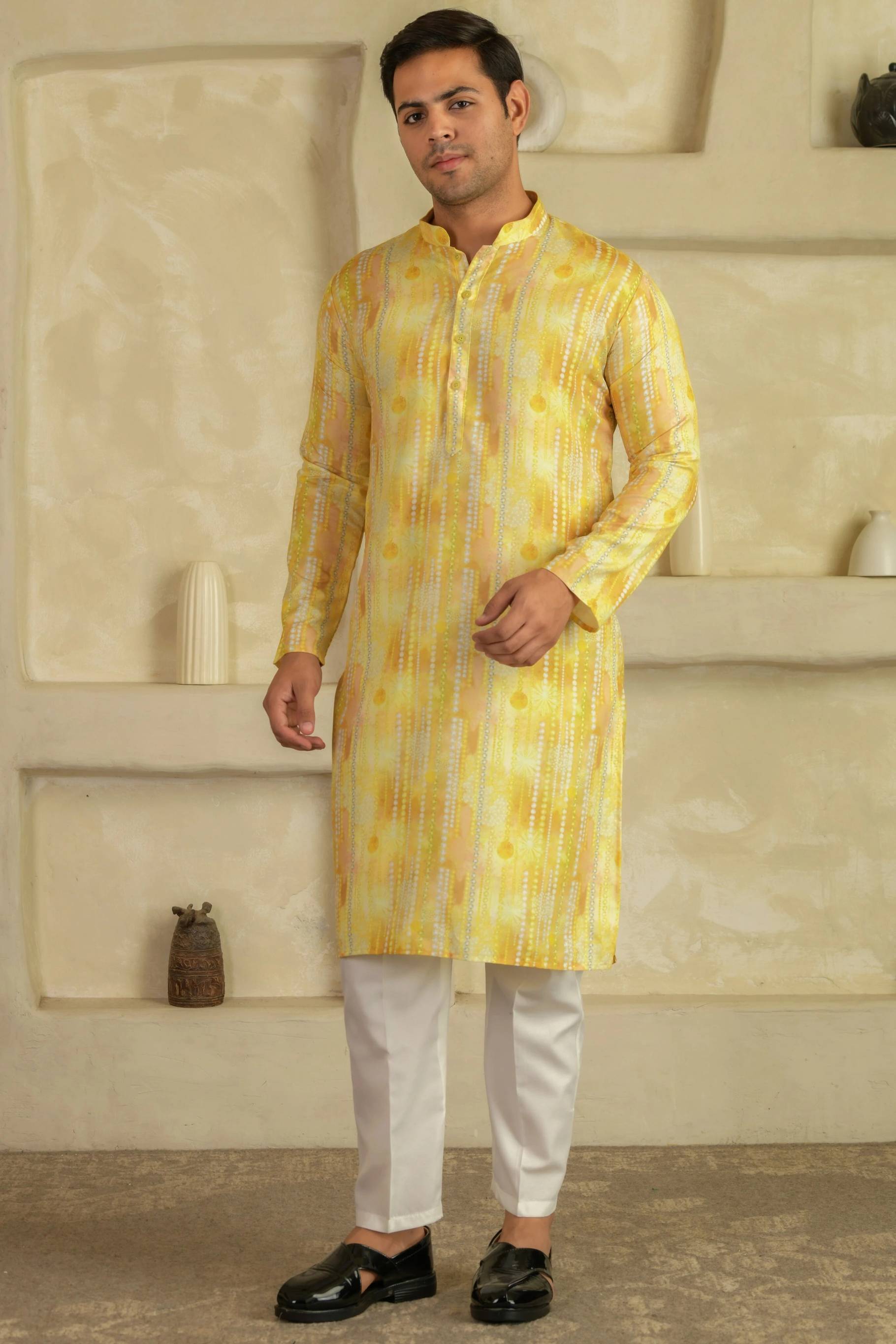 This Trendy And Attractive Men's kurtas And Look Stylish Effortlessly. Made To Accentuate Any Body Type, It Will Give You That Extra Oomph And Make You Stand Out Wherever You Are. This kurta Is Ideal For The Party,Ocassional,Festive,Evening, Valentines Day, Birthday, casual, Etc.The Kurta Is Made Of Standard Fabric Material Which Feels Very Smooth On Skin.It's a Kurta made from Pure Cotton It features Full sleeve, Mandarin/Chinese Neck.