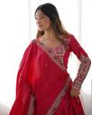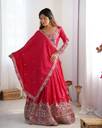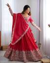 Lehenga waist - 44 inch, Lehenga length- 44 inch, Dupatta length - 2.2 mtr, Blouse - Unstitched 1 mtr, Good quality chinnon silk – soft, lightweight & glossy finish, Designer matching unstitched blouse, Ideal for weddings, festivals, parties, and traditional gatherings, Pair with traditional jewelry and heels for a royal look