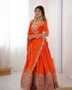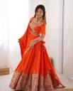 FOLKSHWEAR 21 Embroidered Semi Stitched Lehenga Choli (Orange)