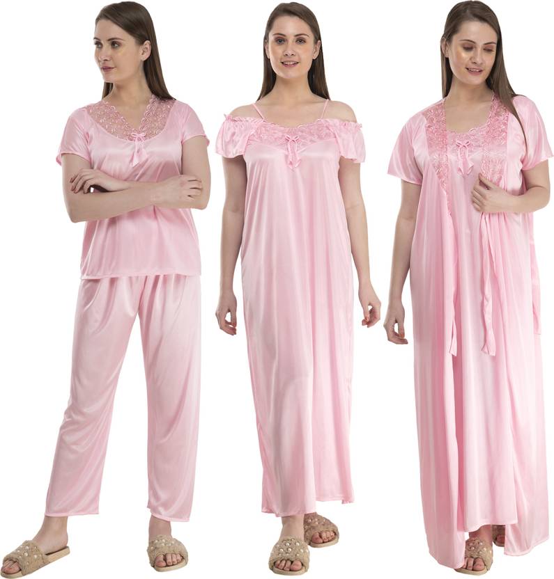 4 Pcs Combo of Satin Nightwear Feature:- Nightwear- : Hand Wash- Stylish n Sexy Nightwear. It is long lasting n comfortable in wearing The Nighty offered by us is an attractive Nightwear. Beautiful and excellent fitting. Very comfortable to wear. Fancy designer Nightwear with lace. Fabric Composition: Made with Soft Quality Satin. Fancy Stunning & Adorable Bedroom Wear. It is long lasting n comfortable in wearing. It gives you a stylish n sexy look. This is a perfect gift for your loved ones.