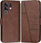 FoneShield Flip Cover for Vivo Y31 Pro 5G / Vivo T4x 5G / iQOO Z10X 5G|Premium Leather Finish | Magnetic Closure (Brown, Magnetic Case, Pack of: 1)