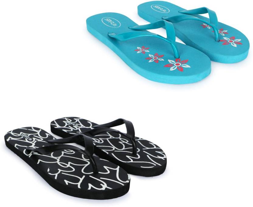 Women Flip Flops (Black, Blue , 7)