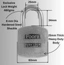 Foora Push Lock with 5 Key,Double Locking,8 Zinc Coated Lever 60mm,Harden Shackle,Door Lock